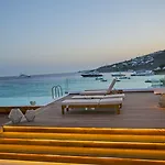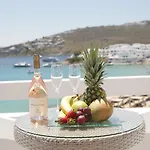 De accommodatie heeft een ligging aan het strand op 10 minuten afstand van Mikonos. Culturele bezienswaardigheden in de omgeving zijn het Lena's Huis (4 km) en het Egeïsch Zeevaartmuseum (4,1 km). Busstation Paradise Beach, dat een goede verbinding door de hele stad mogelijk maakt, ligt slechts een kort ritje van dit hotel in Mykonos Town.